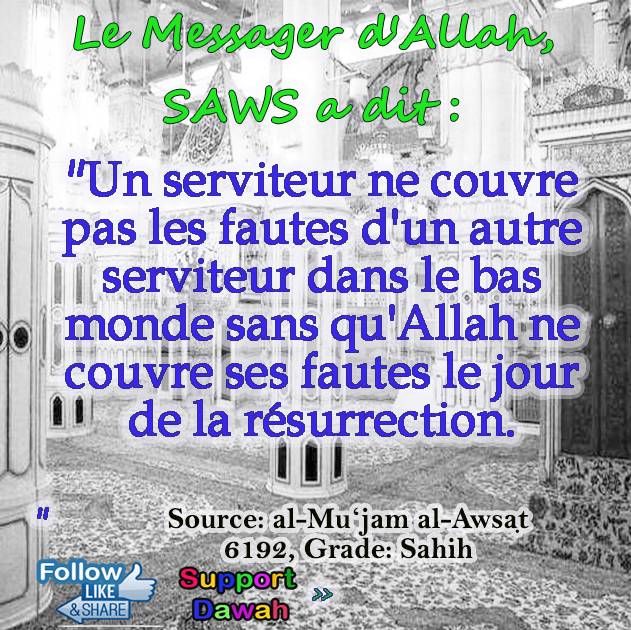 Un serviteur ne couvre pas les fautes d'un autre serviteur dans le bas monde sans qu'Allah ne couvre ses fautes le jour de la