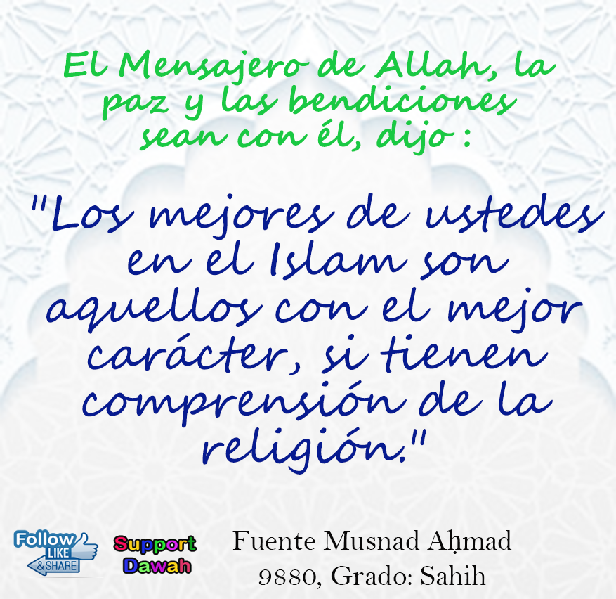 Los mejores de ustedes en el Islam son aquellos con el mejor carácter, si tienen comprensión de la religión.