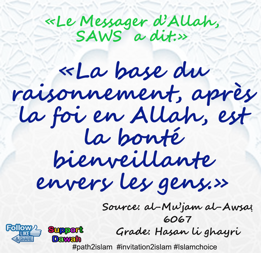 «La base du raisonnement, après la foi en Allah, est la bonté bienveillante envers les gens.»